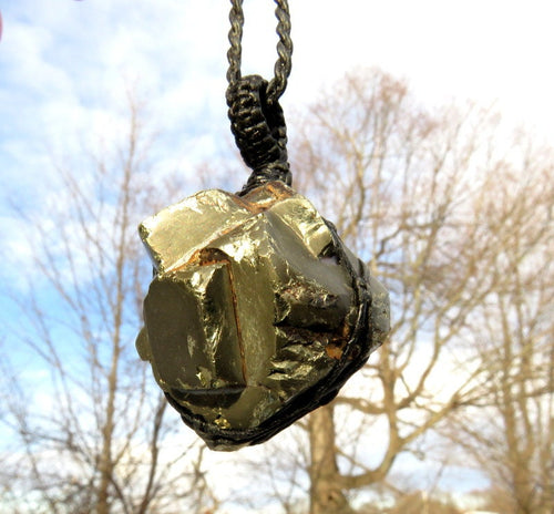 Cubic Pyrite Macrame Necklace: Root Chakra Crystal Healing