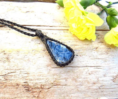 Gorgeous & RARE Pietersite macrame necklace - Rivers of midnight blue with a flashes of chatoyance - classic teardrop shape ✨💙