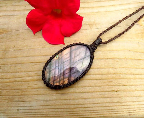 Materials: labradorite, waxed cord, stone, gemstone.