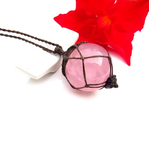 Rose Quartz Crystal Sphere Macrame Necklace, Self-Love Gemstone
