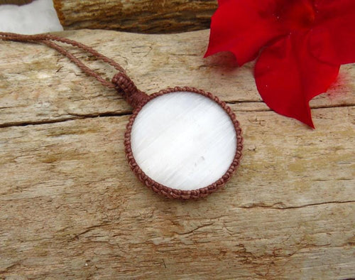 💎 Selenite pendant is 4.9 cm in length (not including loop) and 4.9 cm (widest point)
