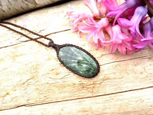 🌹🦋CREATE NEW, POSITIVE PATTERNS & TRANSFORMATION 🦋Gorgeous Seraphinite gemstone macrame necklace - An absolute stunner with its distinctive angel wings and a touch of chatoyance! If you believe in angels, Seraphinite is the perfect stone to have in your collection! ✨⭐✨ You will receive the exact piece in the listing video and photos #1-6 (*model is wearing a larger Seraphinite)