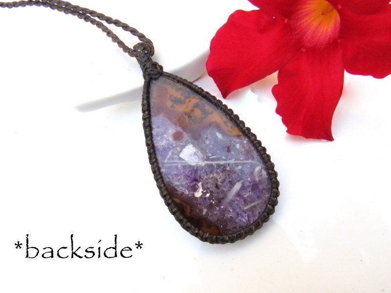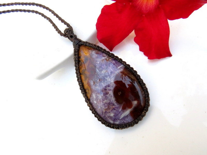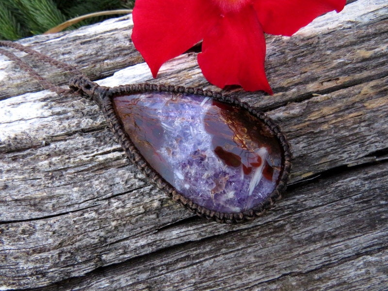 😍WOW 😍 Can it get any better than this ? This beautiful piece is an Amethyst Agate macrame necklace -gorgeous and unique colors - deep burgundy red Agate and purple Amethyst ! This beautiful gemstone is sourced in Turkey and is considered a rare type of Agate.