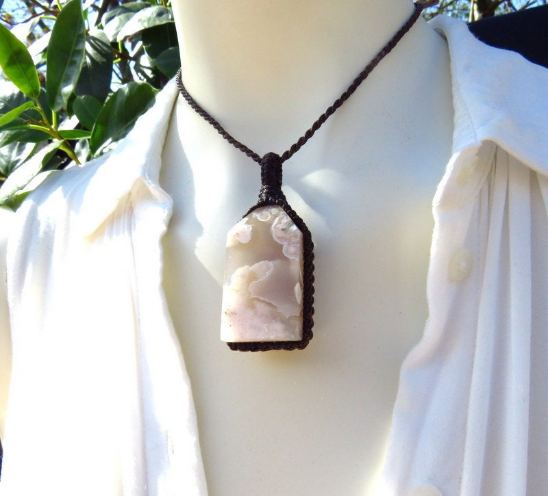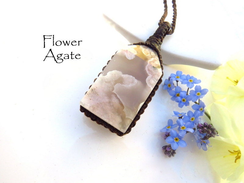 Materials: agate, gemstones, stones, semiprecious stones, flower agate, waxed cord.