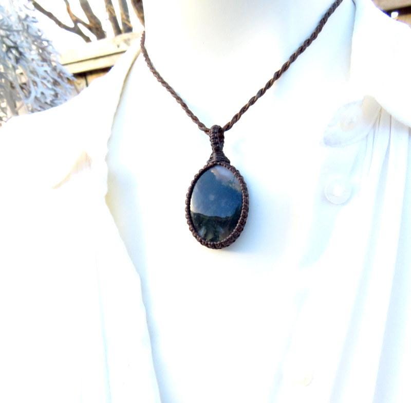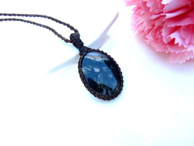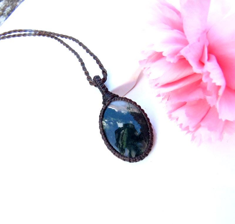 Gardener gift, Moss Agate pendant necklace