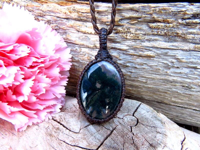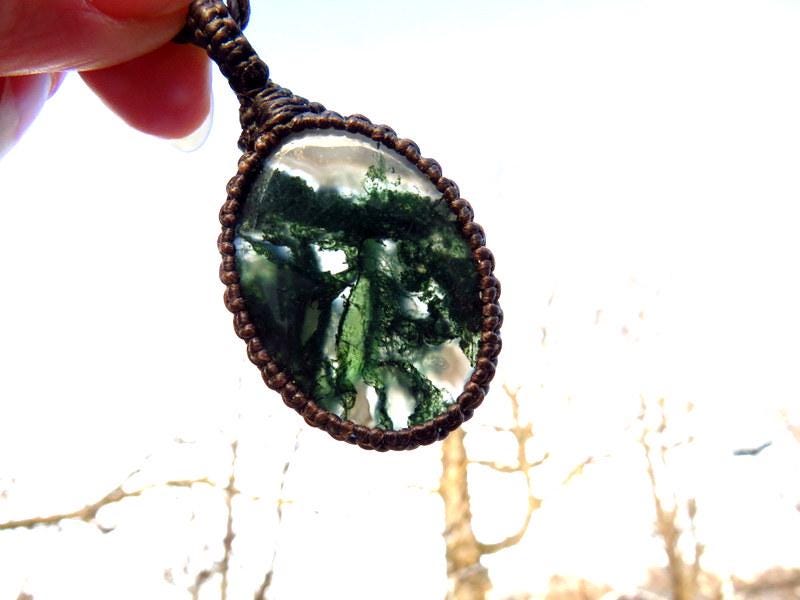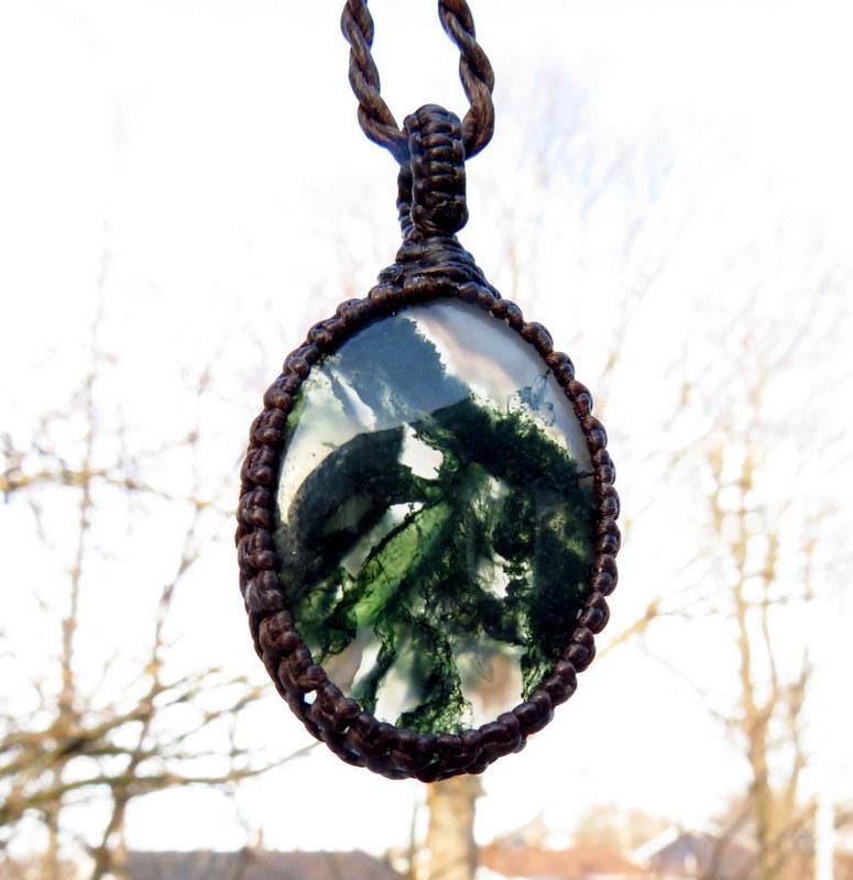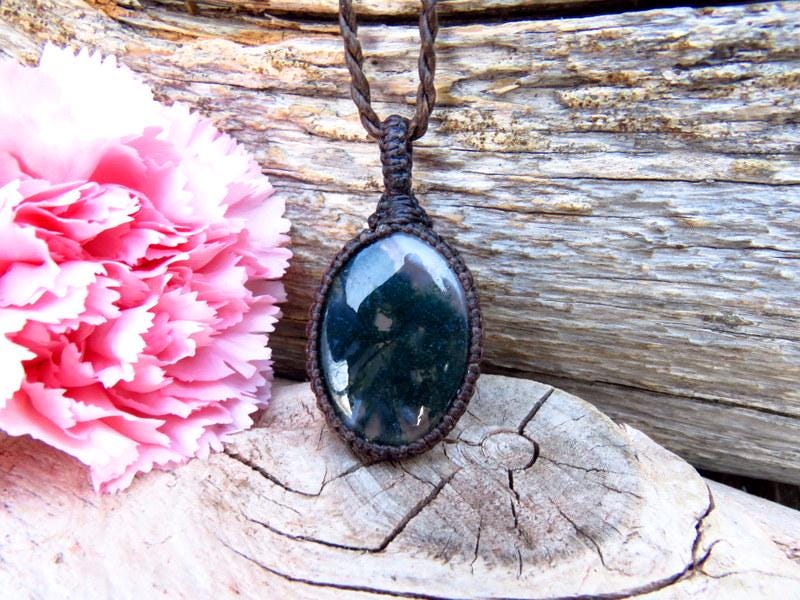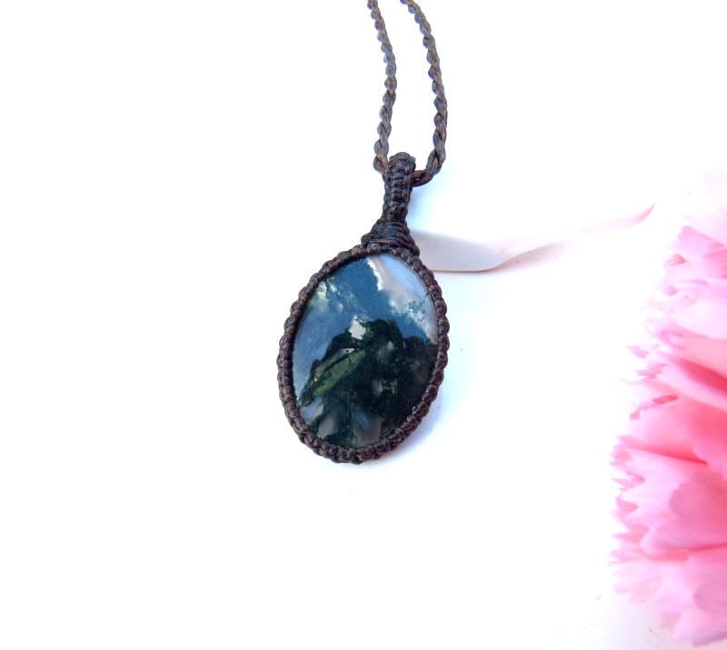 Lovely Moss Agate pendant necklace - Moss Agate contains branching mineral inclusions and patterns that resemble moss, little trees or other vegetation...This Moss Agate has and abundance of earthy, forest green inclusions in translucent Agate. The perfect gift idea for the gardener or nature lover 🌿