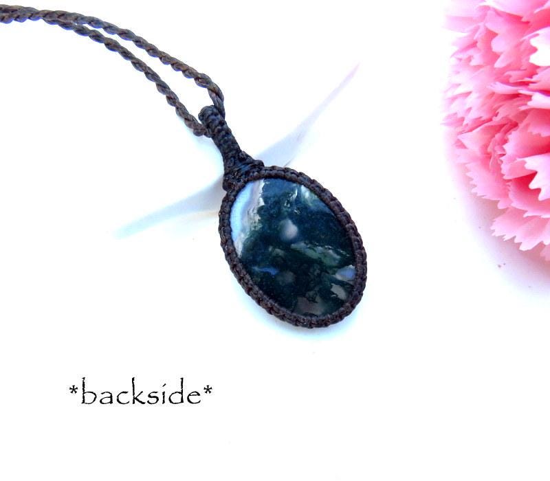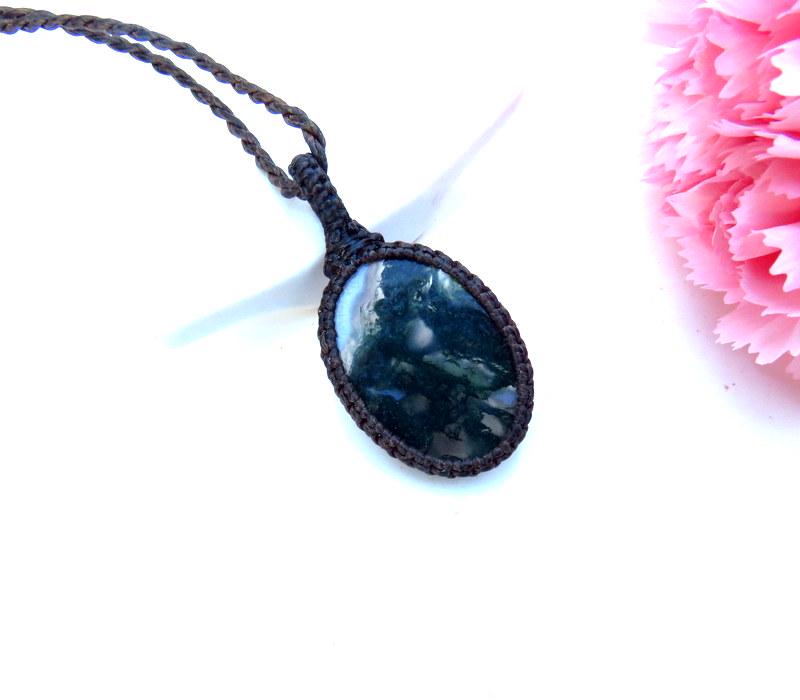 *This Moss Agate pendant is 3.5 cm long (excluding the loop) and 2.7 cm wide