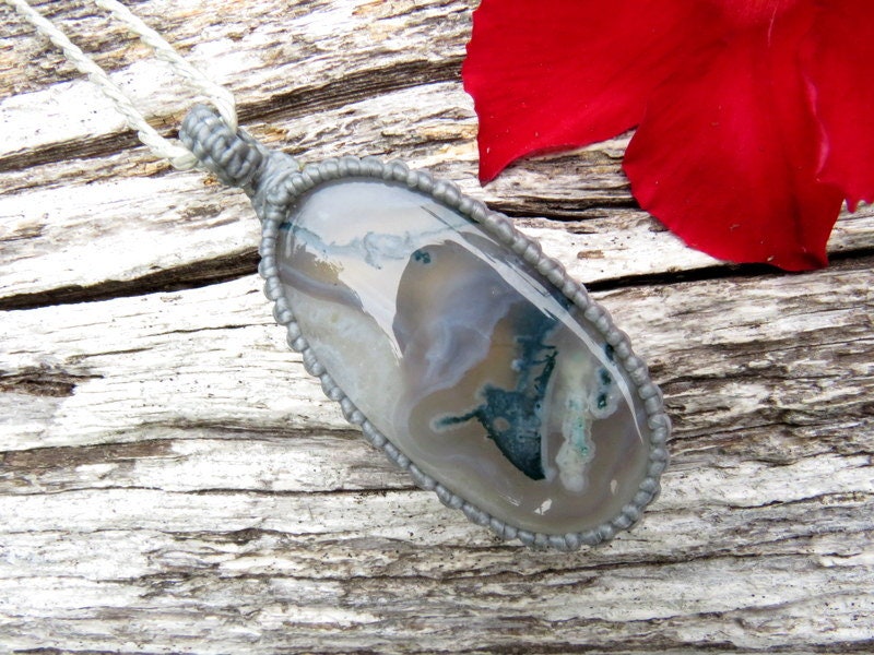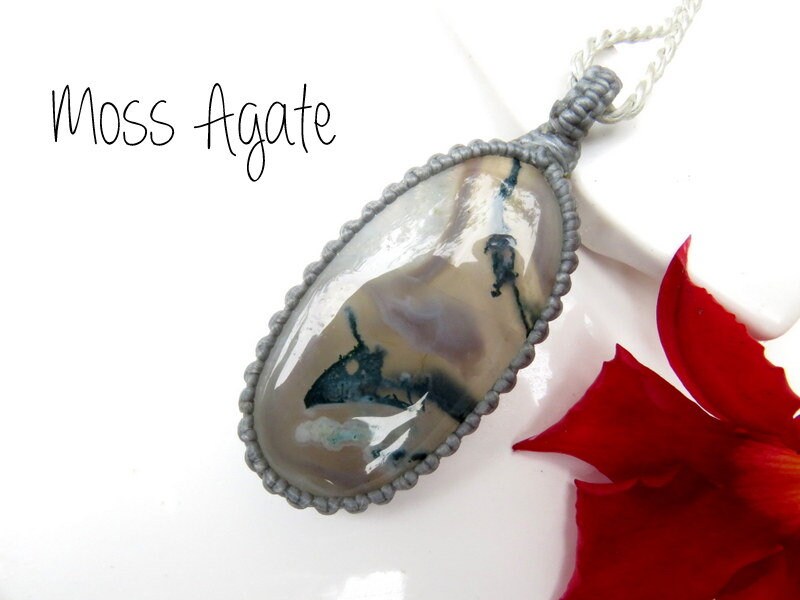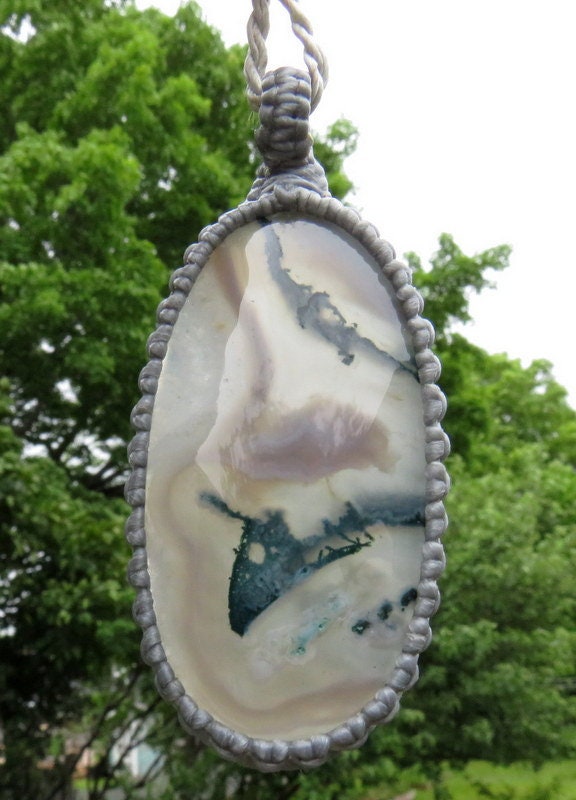 🌹Spectacular and one of a kind ! Moss Agate macrame necklace - Moss Agate contains branching mineral inclusions and patterns that resemble moss, little trees or other vegetation...This Moss Agate has and abundance of earthy green plumes. Would make a beautiful gift for the gardener or nature lover !