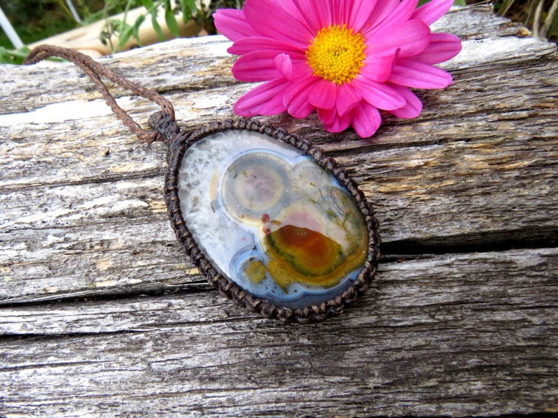 👉FOR USA BUYERS: ALL PRICES IN OUR SHOP INCLUDE APPLICABLE DUTIES/TARIFSS - YOU WILL NOT BE CHARGED DUTIES AGAIN WHEN YOUR ORDER ARRIVES. ALL DUTIES BETWEEN CANADA/USA ARE PRE-PAID BY THE SELLER AND SUBMITTED TO OUR SHIPPING CARRIER. AGAIN, YOU WILL NOT HAVE TO PAY DUTIES AGAIN WHEN YOU RECEIVE YOUR ORDER. SHIPPING IS FREE 🌹Fantastic and RARE Turkish Agate macrame necklace -✨ Phenomenal Agate from Turkey - fascinating orbs and unique colors ! Incredible addition to your gemstone treasure box ✨
