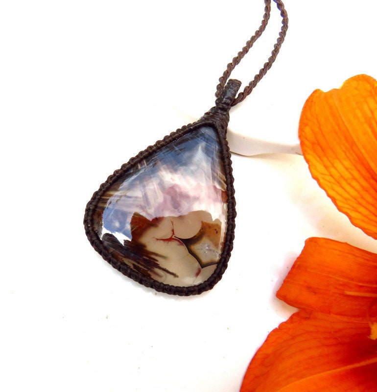 Materials: agate, gemstones, semiprecious stones, waxed cord, turkish stick agate, sagenitic agate.