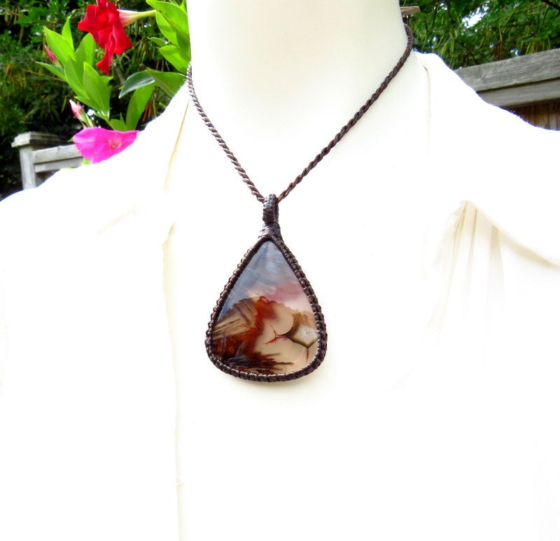 This beautiful piece is a "Stick" Agate macrame necklace -The pattern, the colors - it is perfection 👌 Vibrant reddish orange and earthy brown and filled with 'stick like' intriguing inclusions and wonderful patterns - one of a kind! A rare find 🔥💎