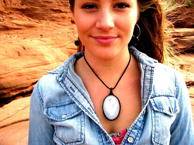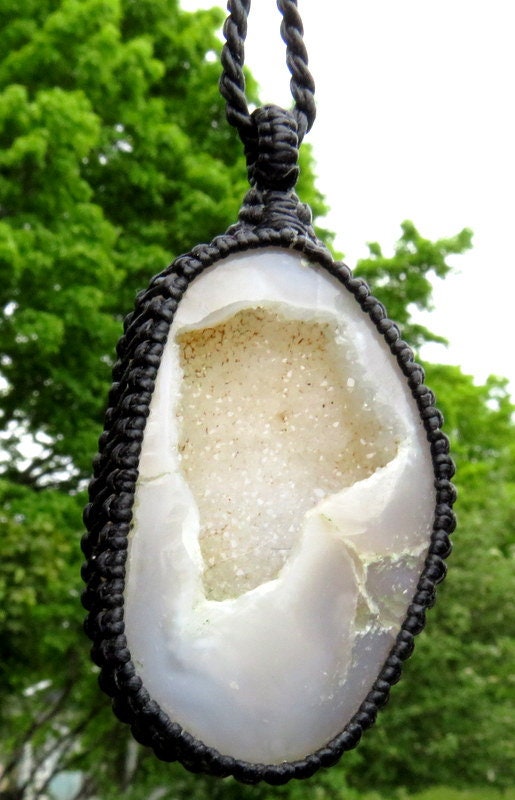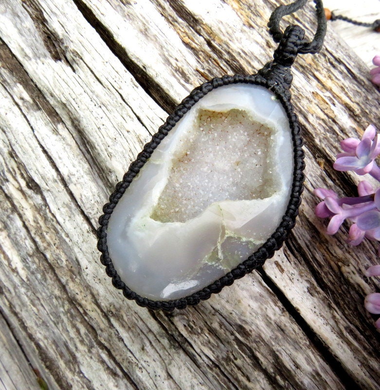 .Gorgeous Agate Geode crystal necklace - Lovely soothing gray Agate with a large twinkling crystal cavern. So pretty ! You will receive the exact stone in photos #2-8 and the video. *model is wearing a different, but similar, Agate druzy necklace.