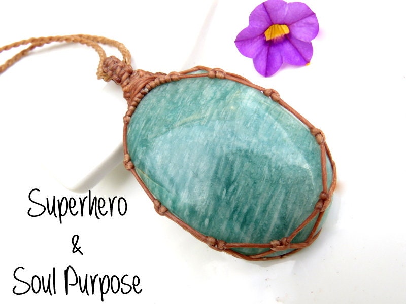 A stunning Amazonite macrame necklace ✨ Soft, minty green Amazonite crystal ! Smooth polish and a generous size. A great gift for the 'warrior' woman in your life !🐱🏍 * Natural imperfections - You will receive the exact stone in photos #1-6