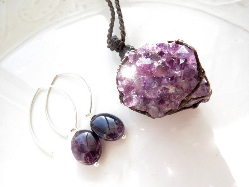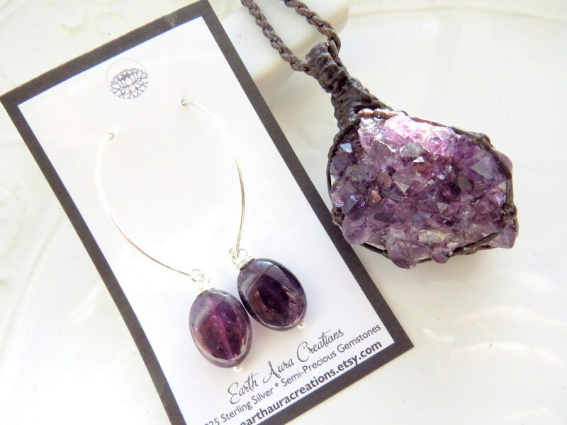 Beautiful deep purple Amethyst necklace and earrings set ! A lovely Amethyst macrame necklace and sterling silver Amethyst drop earrings - the perfect gift!💜💜💜
