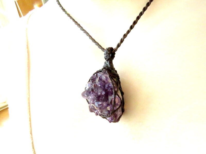 Materials: amethyst, gemstone, waxed cord.
