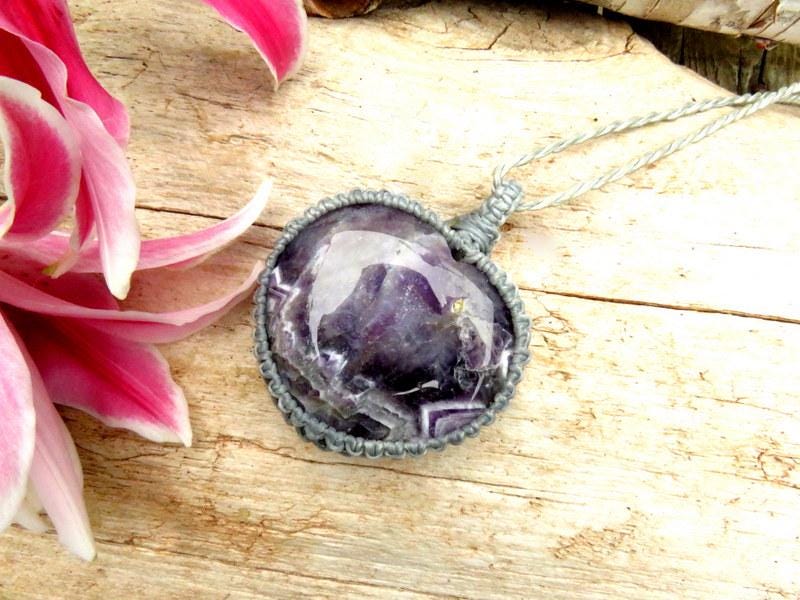 💜CALM , CLARITY & WISDOM 💜Exquisite Dream Amethyst crystal necklace - Dream Amethyst - also known as Chevron Amethyst - is a combination of Amethyst & White Quartz - with V-banded or striped patterns. This gorgeous gemstone is carved into a pretty heart shape, a gorgeous purple color with stunning patterns 💜