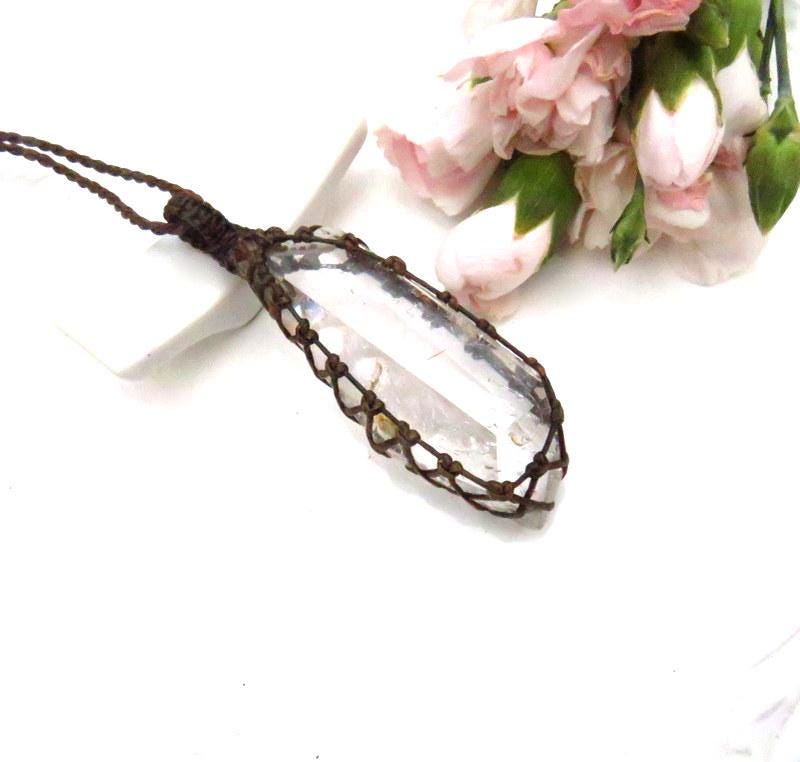 ⭐ENERGY, PROTECTION & PURIFCIATION ⭐ Clear Quartz crystal necklace -- Clear Quartz crystal - absolutely pristine Quartz ! Would look great worn with a longer cord or against the skin ~ :) Quartz is one of the traditional birthstones for March - and is a wonderful meditation tool.