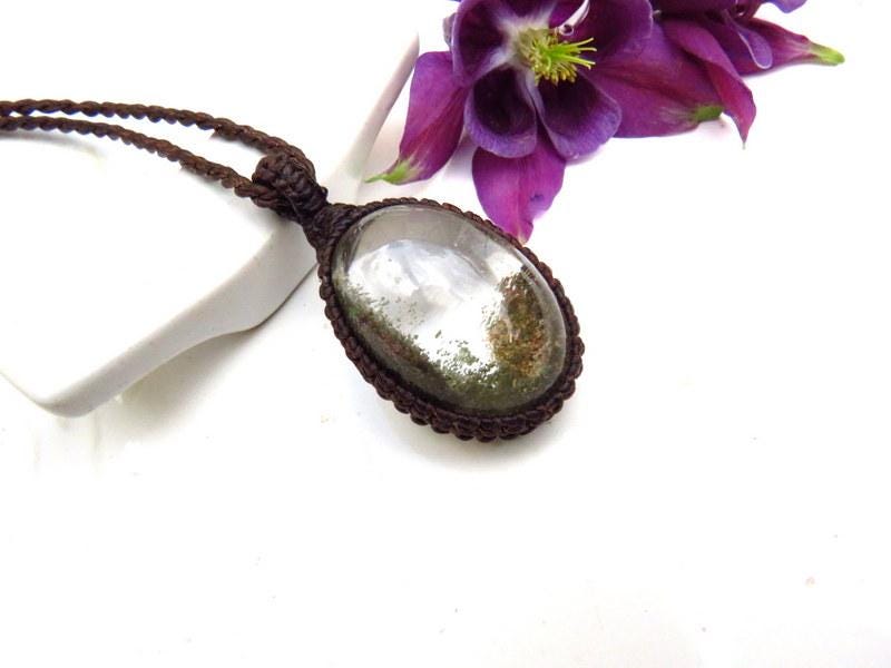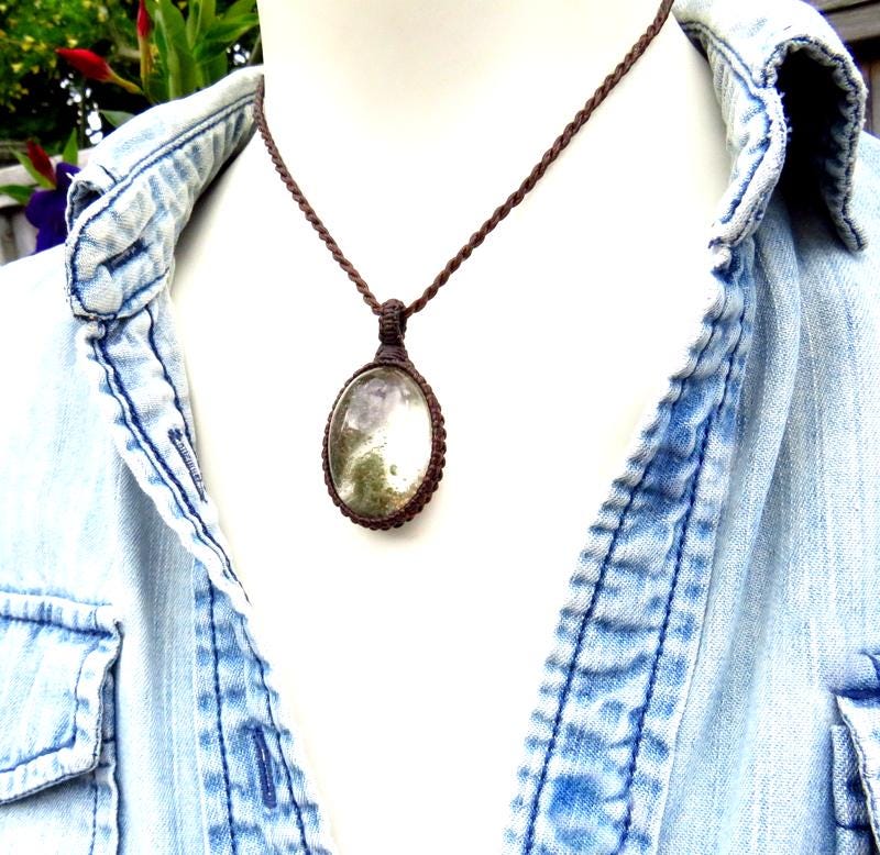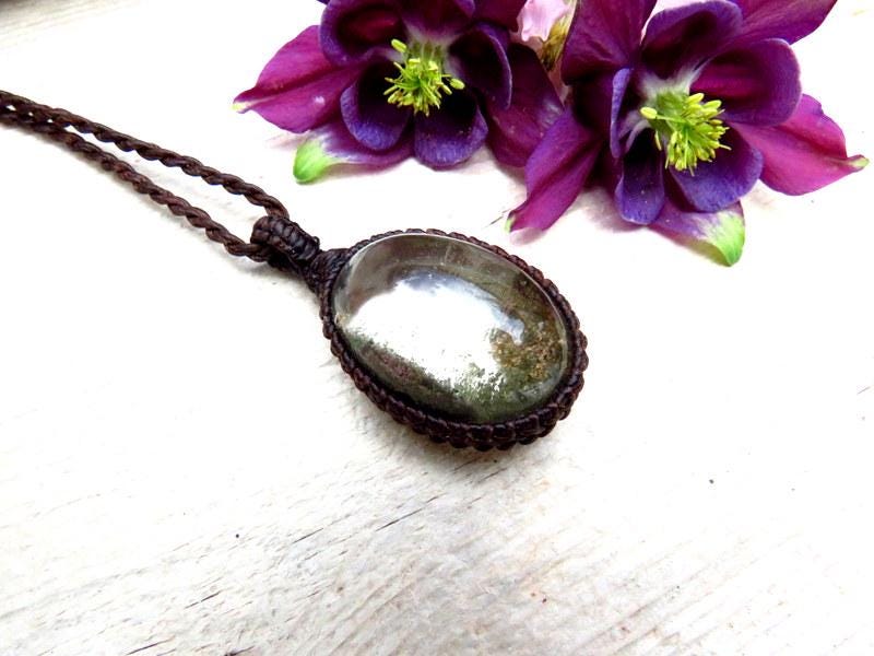 BEAUTIFUL Garden Quartz necklace - Intriguing mineral inclusions make this a very fun piece to gaze at - ✨ all encased in a gorgeous Quartz crystal globe - Also known as Lodalite, garden quartz was formed millions of years ago in Brazil. The colorful mineral inclusions give the look of a magical garden landscape...Brazilian folklore tell the story of fairy and elves living inside the ' garden ' of the Quartz . A perfect piece for the gardener or fairy lover ~ : ) **You will receive the exact crystal in photos #1-7 and the video.