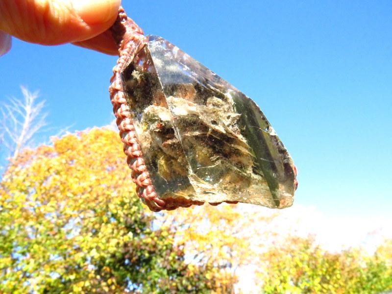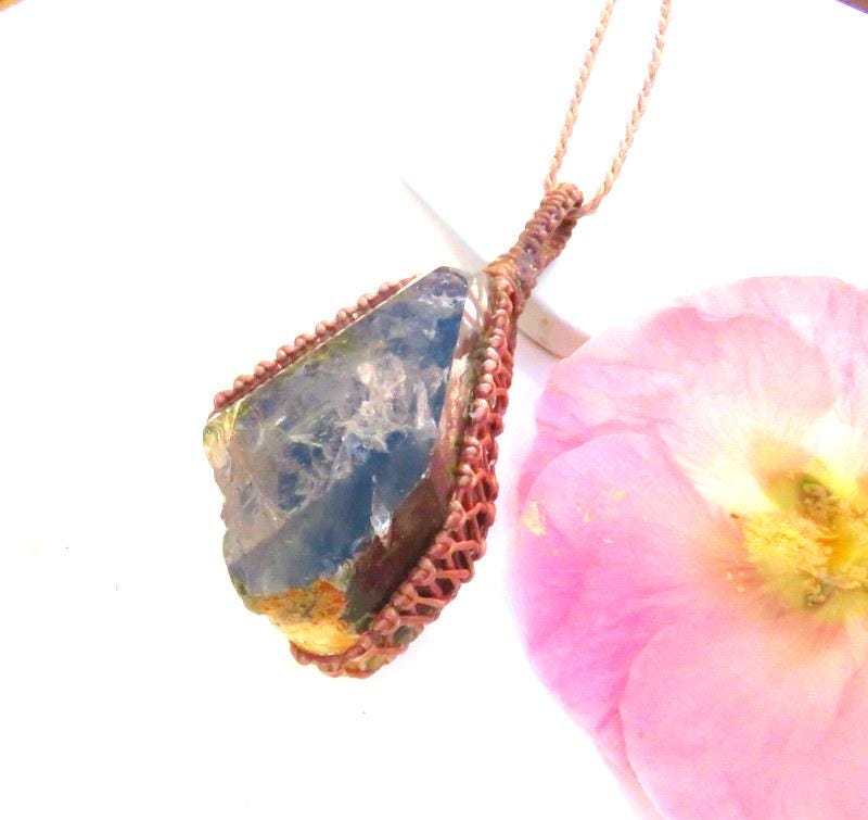 Another stunning freeform Shamanic Dream Quartz healing crystal necklace - Quartz full of colorful mineral inclusions including deep, forest green, silvery gray and splashes of mauve and peach! A very generous size and a gorgeous freeform shape. Also known as Lodolite, Landscape Quartz or Garden Quartz - this distinctive crystal is revered for its captivating inclusions and unique visual narratives. The most enchanting feature of Shamanic Dream Quartz lies in its internal world, where dream-like inclusions, often resembling scenic vistas, underwater scenes, or landscapes, can be observed. These internal formations are believed to enhance the crystal's ability to aid in meditation, dreamwork and spiritual journeys. As you gaze into the crystal, it's as if a portal to another realm ✨