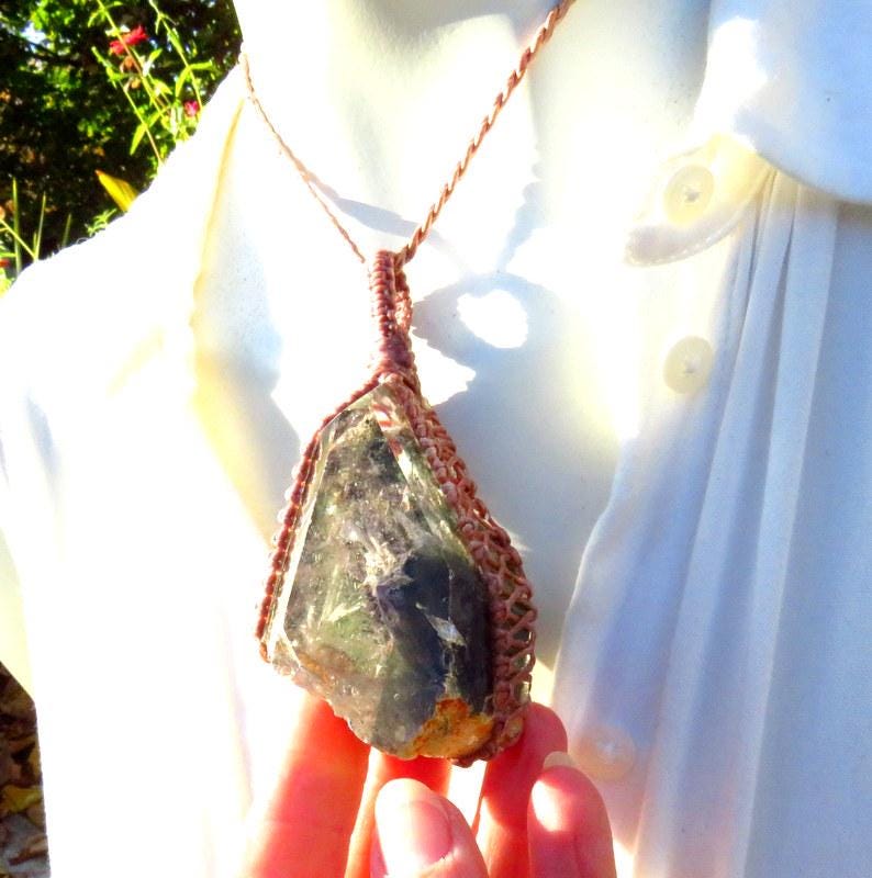 Materials: gemstones, garden quartz, quartz, waxed cord, lodolite, shamanic quartz.