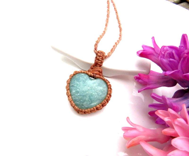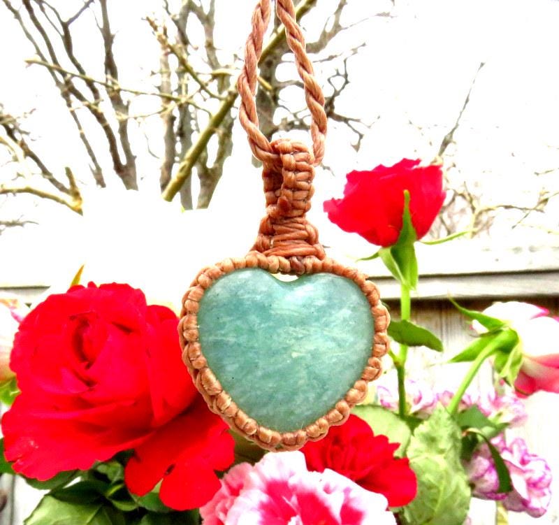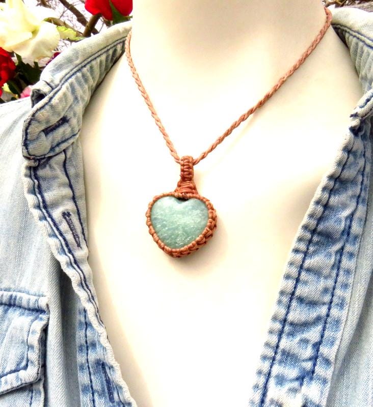 This listing is for a lovely Amazonite heart macrame necklace - the sweetest mint green Amazonite crystal heart with a beautiful sheen ! Amazonite is the perfect gift (or self gift) for the warrior woman in your life.
