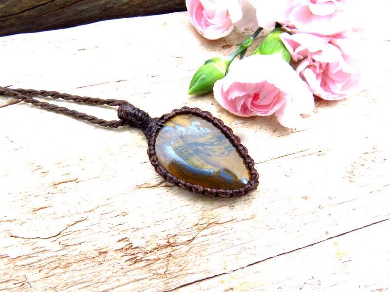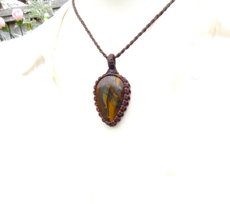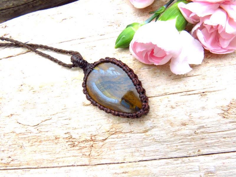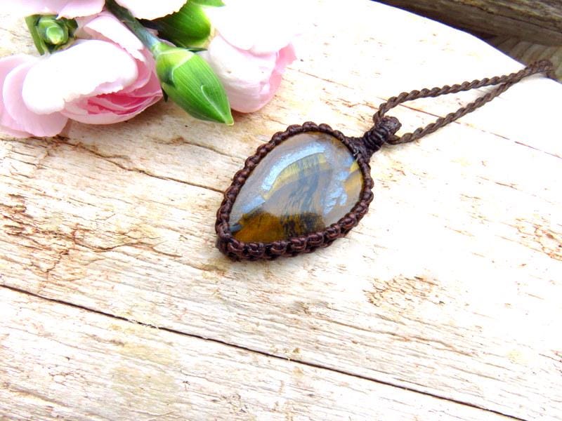 Tiger Iron macrame necklace - Gorgeous layers of golden tigers eye and shiny, metallic hematite - Deep and rich brown -the patterns resemble the grains of an ancient tree ✨