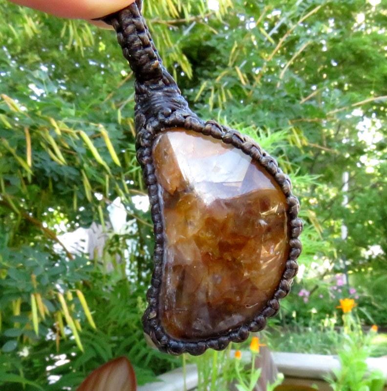 ✨GATEWAY TO THE INNER SOUL ✨Unique Golden Healer Quartz moon macrame necklace - This lovely Golden Healer Quartz has been carved into a beautiful crescent moon shape - it is a deep cooper brown and gold with an ethereal multi-dimensional world inside -✨