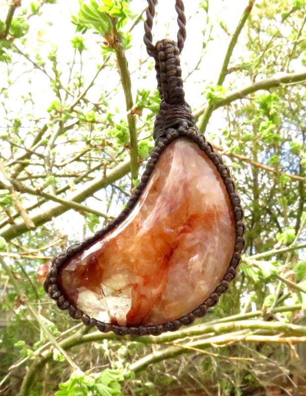 ✨GATEWAY TO THE INNER SOUL ✨Unique Golden Healer Quartz moon macrame necklace - This lovely Golden Healer Quartz has been carved into a beautiful crescent moon shape - it is a glowing golden yellow and orange and an ethereal multi-dimensional world inside -✨