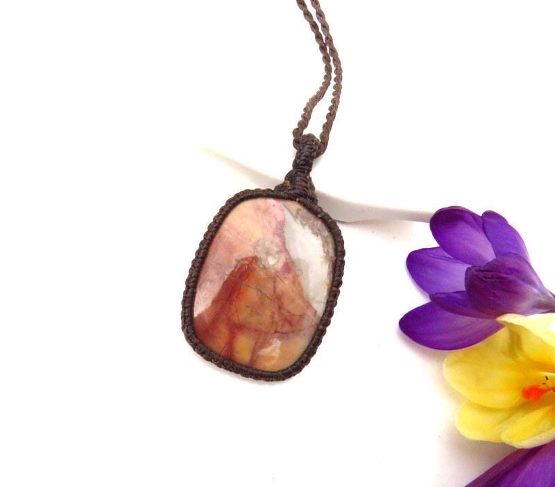 Materials: gemstone, jasper, stone, butterfly jasper, butterfly wing jasper, mariposa jasper, semiprecious stones, waxed cord.