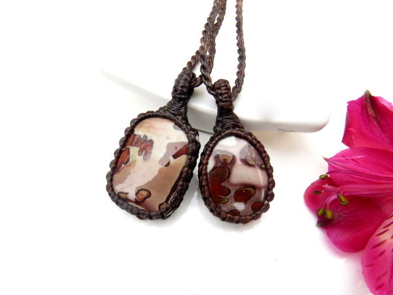 Unique Coffee Bean Jasper macrame necklace set - Rustic gray and clay red landscape with wildly intriguing formations!