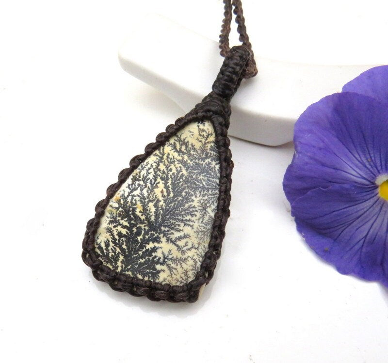 🌹Unique and relatively rare Psilomelane Dendrite gemstone necklace - Psilomelane Dendrite is sometimes referred to as "Nature's Ink" - is known for its beautiful tree- like patterns that resemble delicate ferns, feathers, or frost on a windowpane✨ It is often sought after by collectors and enthusiasts for these unique and captivating patterns - making it a prized addition to mineral collections. The patterns on this gorgeous piece are crisp, clear and intricate ! Lovely find ! ✨Psilomelane Dendrite Meaning: Symbolizes growth, renewal, and the interconnectedness of all living things. The branching, fractal-like structures also symbolize the evolution of one's journey or the interconnected paths of life.