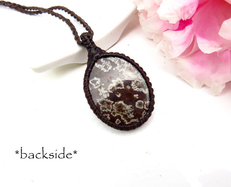 Brown Snowflake Obsidian macrame necklace - Unique brown Snowflake Obsidian - the snowflake patterns are the inclusion of the mineral Cristobalite. Cool find !