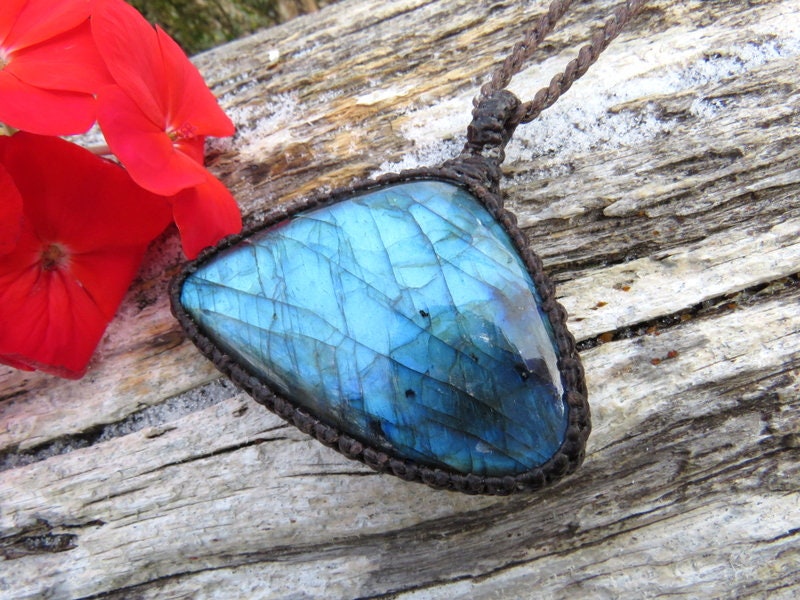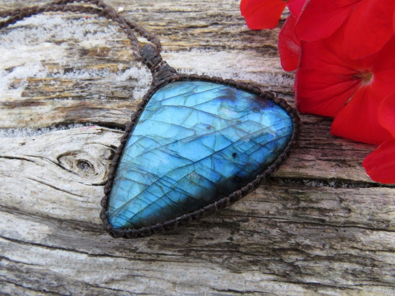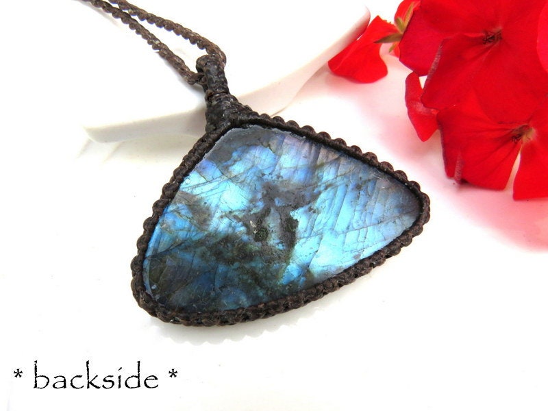 TRANSFORMATION & CHANGE 💎Lovely Labradorite macrame necklace - fiery blue flash and a unique shape - Simply Divine ! *The intensity of the flash is affected by movement and lighting.