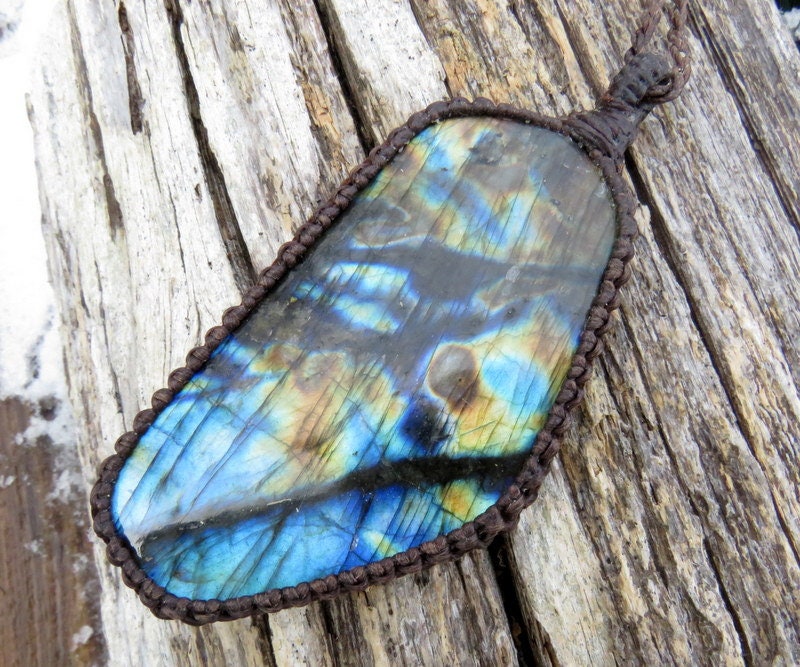 Brighten up those long winter days with this fiery blue and golden fire Labradorite macrame necklace - allow the colors and life of this stone to recharge your soul and spirit ✨ a very generous size and unique shape - Simply Divine ✨