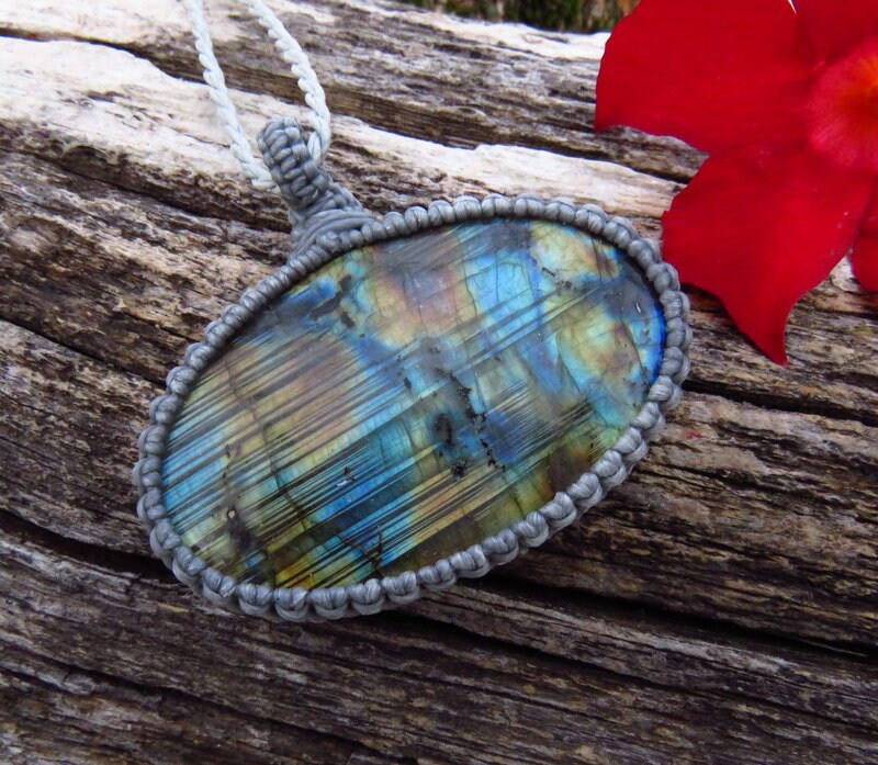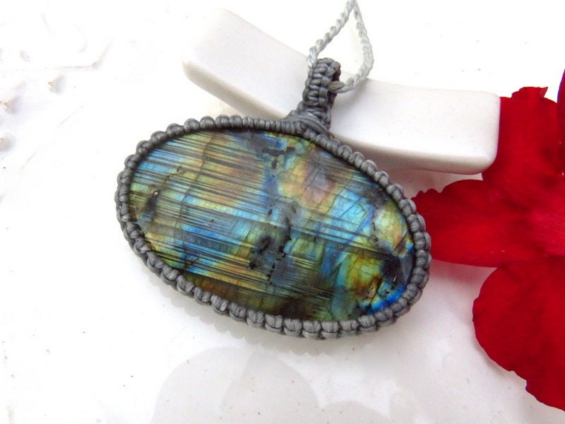 Quality Rainbow Labradorite macrame necklace - a very bright electric flash or 'fire' - classic, oval shape - Simply Divine ! * You will receive the exact piece in photos #1-7 and the video.