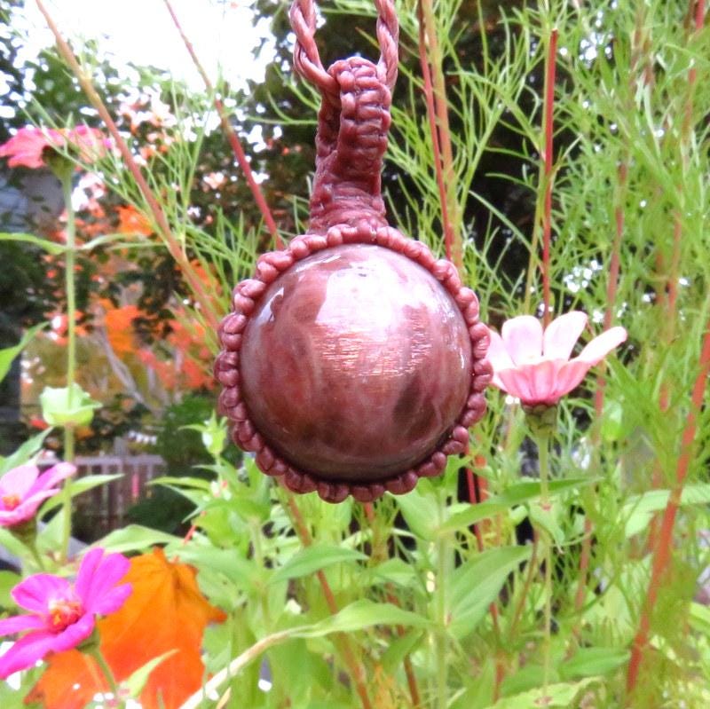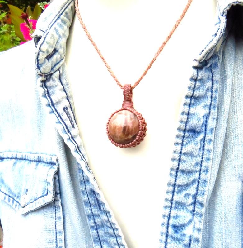 Beautiful Peach Moonstone sphere necklace (Golden Shine Sunstone) - This unique gemstone is absolutely gorgeous! It has a dazzling golden shine / flash that dances across the surface as it catches the light. Very unique and rare find 🌹 (Check out the video where you can really see how much it glows !)