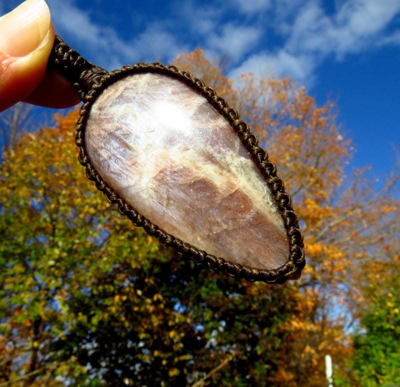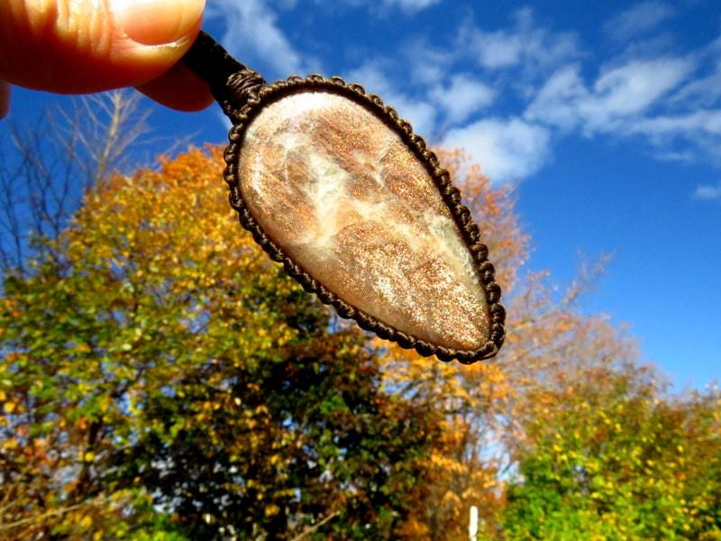 Absolutely stunning top quality Sunstone + Moonstone macrame necklace - a brilliant blue and golden orange flash crystal - blue Moonstone AND glittery orange (Sunstone) ๐๐งก *prettier in person !
