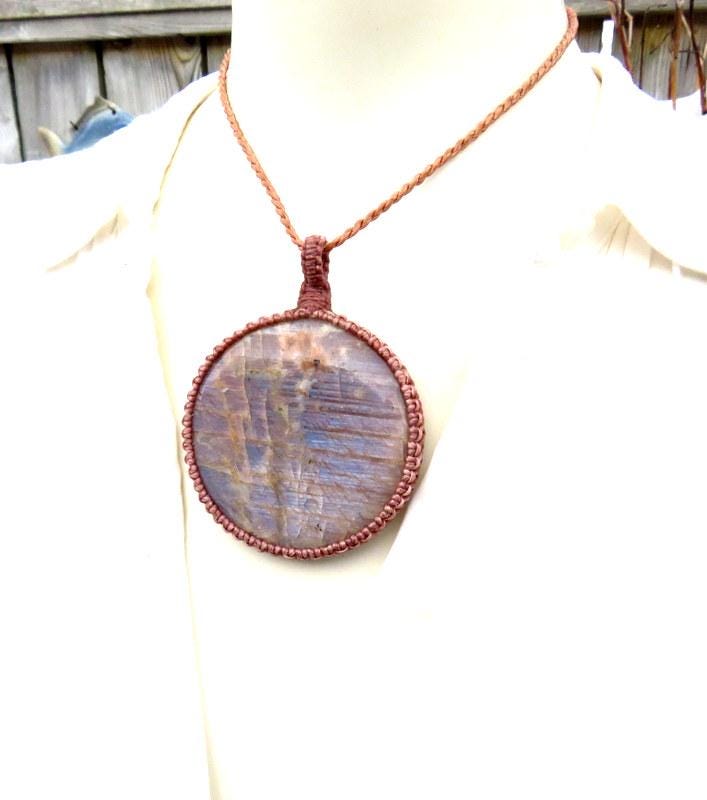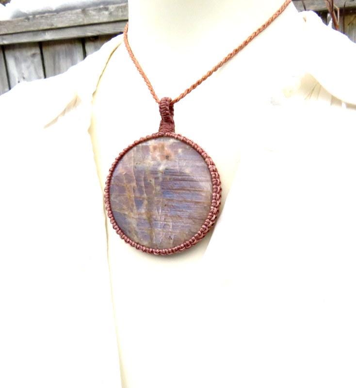 Materials: cabochon, waxed cord, belomorite stone, moonstone.
