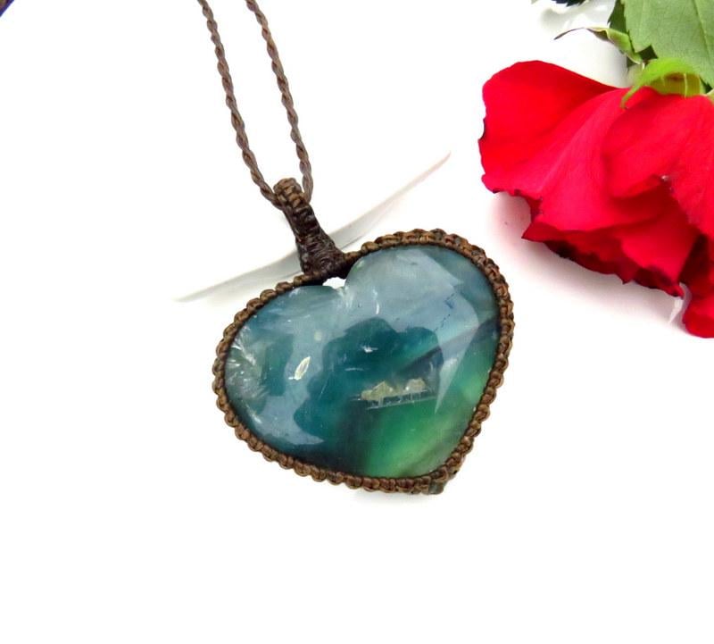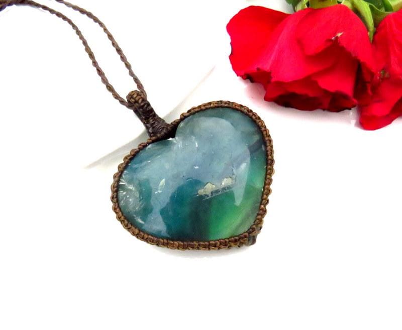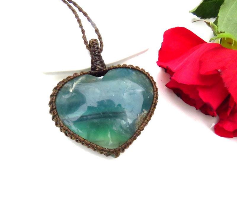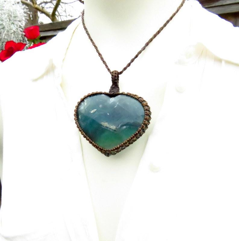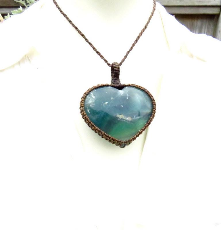 FLOW WITH YOUR TRUTH - Gorgeous and RARE blue Fluorite crystal necklace - the gorgeous colors (blue, green & purple) and the soothing energy make this a great new friend ! And a very generous size in a gorgeous heart shape 💖 In Latin, 'fluorite' means 'to flow' : )