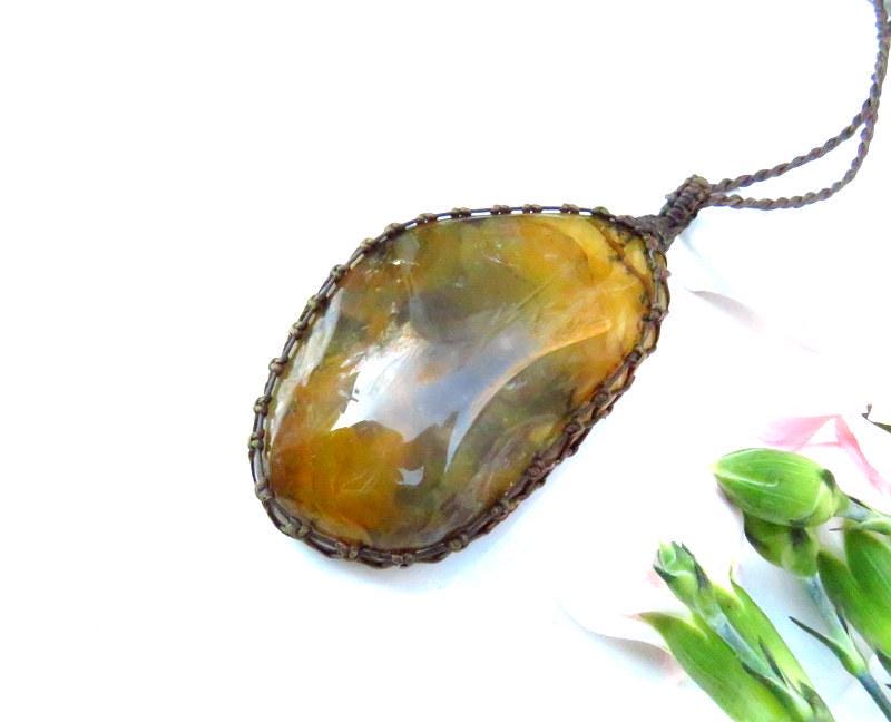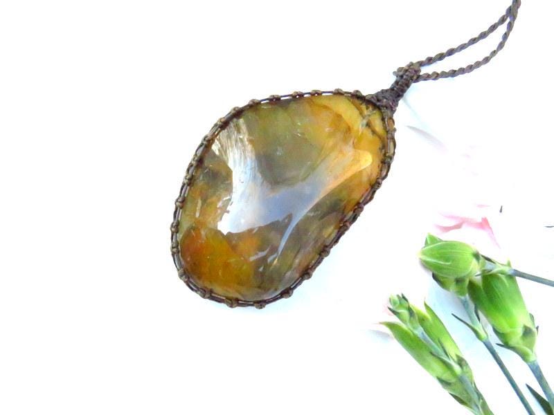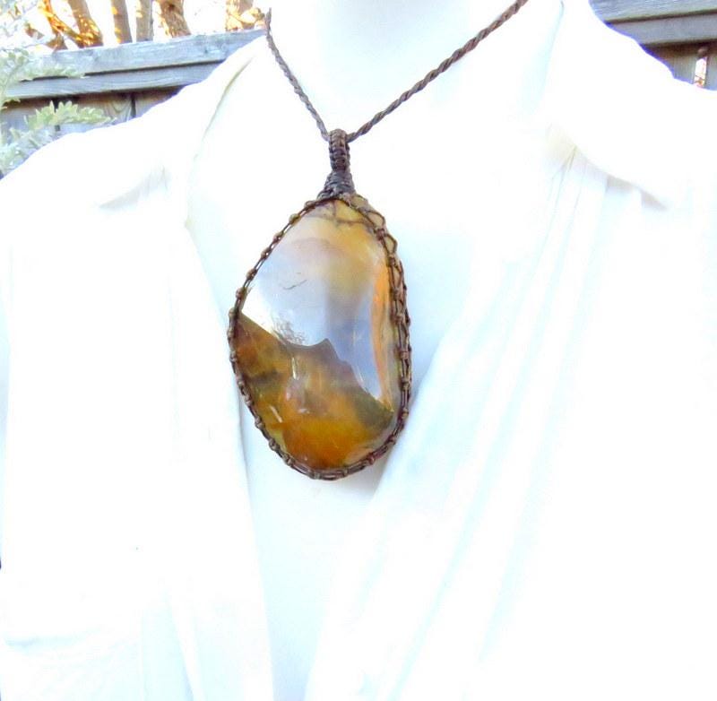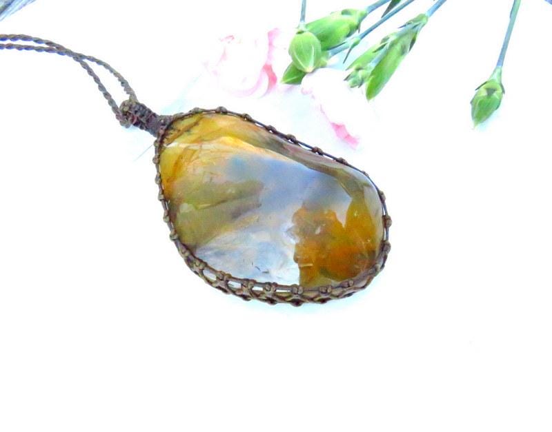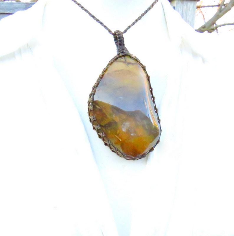 Rare Find! Dendritic Quartz crystal macrame necklace - Picture a crystal so clear it feels like frozen breath—and within it, tiny mineral filaments unfurl like ink dropped into water. These inclusions, often manganese or iron oxides, branch into exquisite patterns reminiscent of winter-bare trees, fern fronds or lightning spread across a night sky.