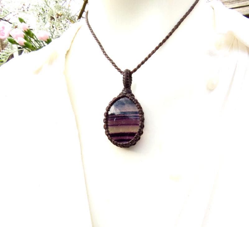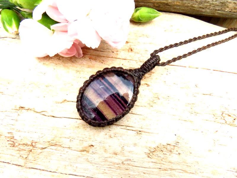 FLOW WITH YOUR TRUTH - Gorgeous Fluorite crystal necklace - the gorgeous purple color and beautiful banding! The soothing energy makes this a great new friend ! In Latin, 'fluorite' means 'to flow' : )