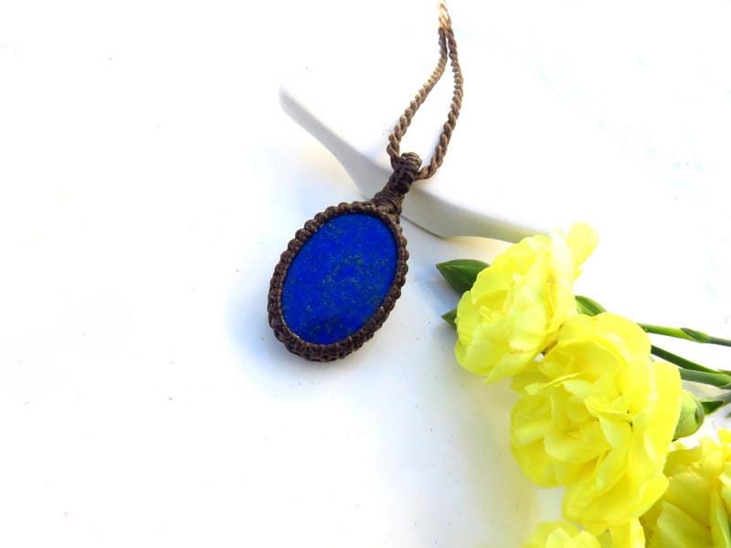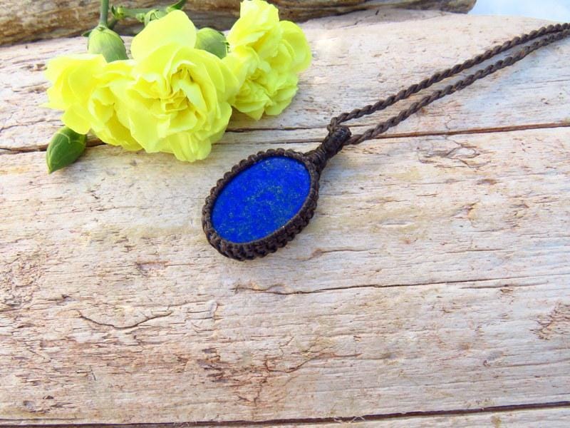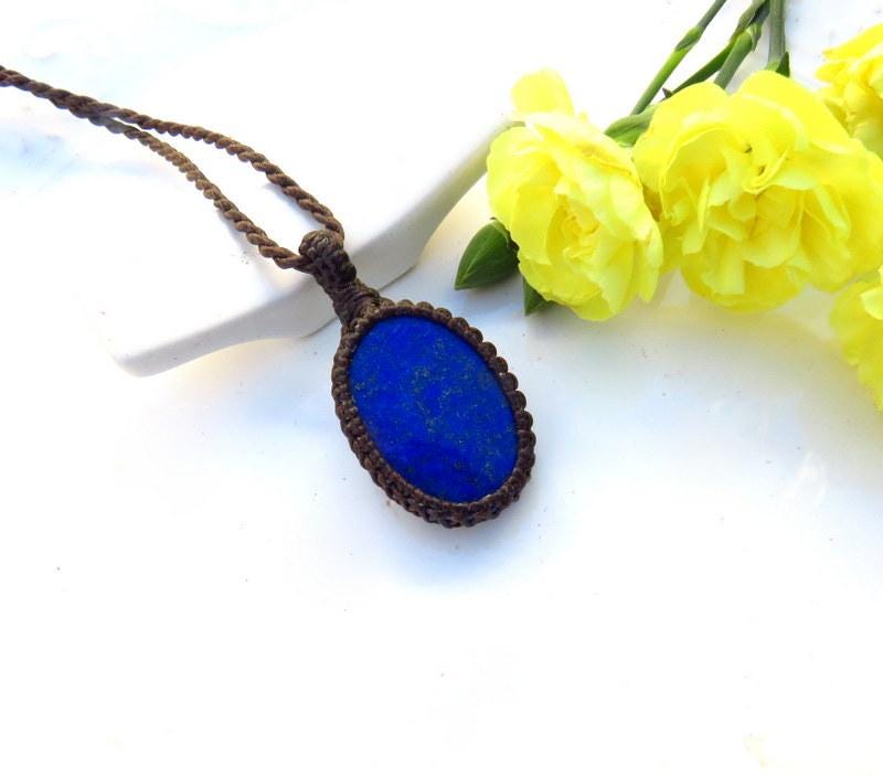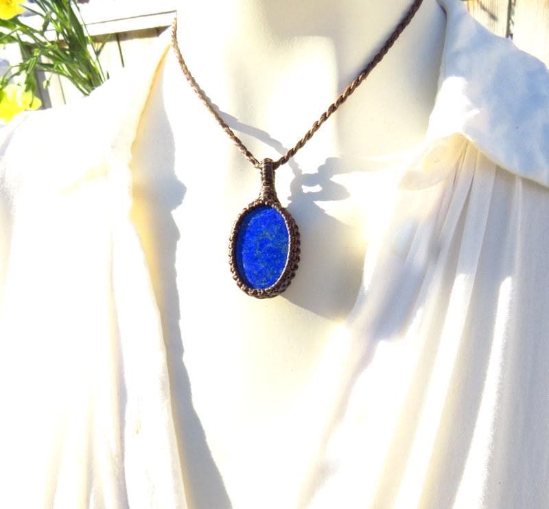 Superb Lapis Lazuli macrame necklace - lovely, deep royal blue Lapis Lazuli from Afghanistan- speckled with golden Pyrite - classic oval shape. The gemstone of ancient kings and modern-day dreamers - beckons with its deep blue color and golden flecks of Pyrite that twinkle like stars in a midnight sky ! 💙 A cherished companion for those on a journey of self-discovery and personal growth. Its association with the throat chakra also makes it a popular choice for enhancing communication and speaking one's truth with confidence and authenticity.