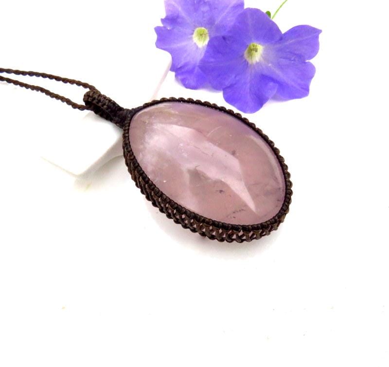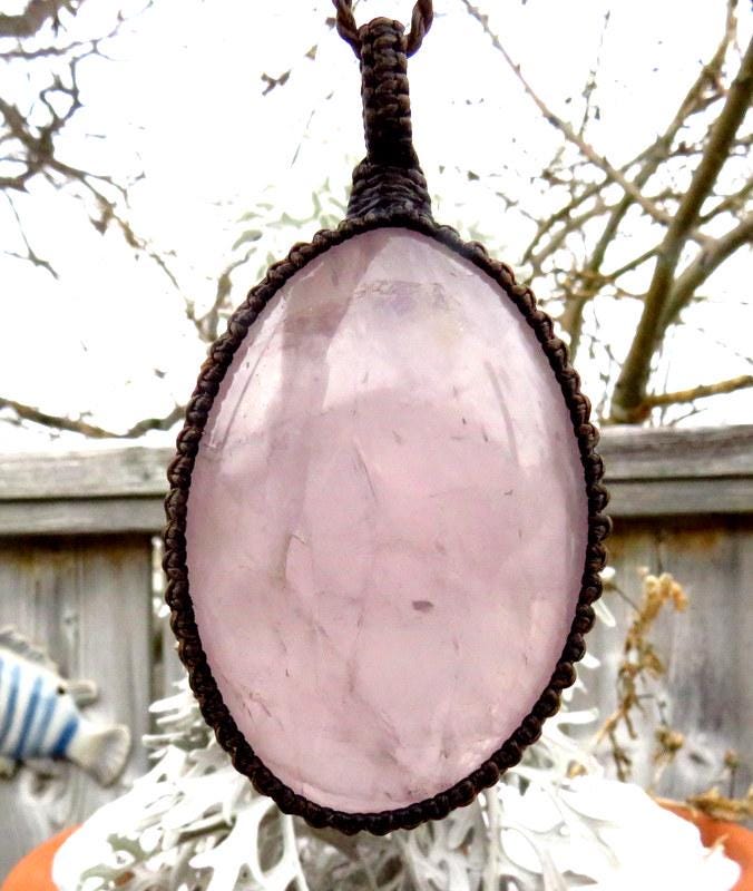 💕SELF-LOVE & COMPASSION🌹Beautiful~ extra large Madagascar Rose Quartz macrame necklace - the sweetest pink Rose Quartz crystal and includes a peek a boo rainbow prism- sooo very pretty ! An important stone for helping us to raise our vibrations of love and compassion - for ourselves and others ~ : )