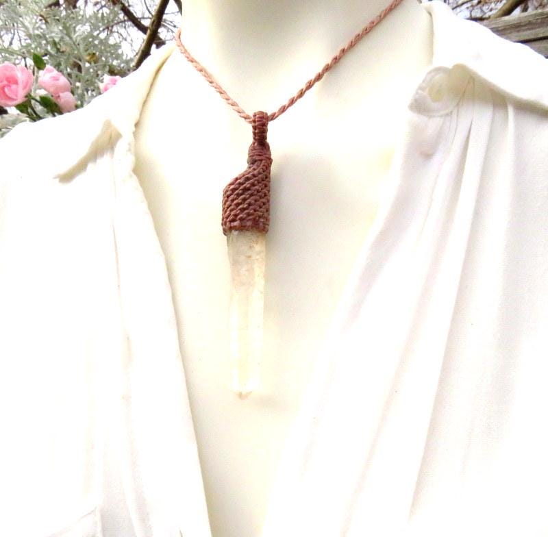 Materials: quartz, crystal, quartz crystal, lemurian, waxed cord.