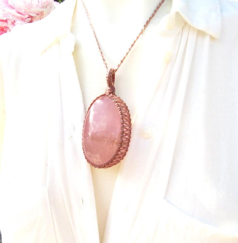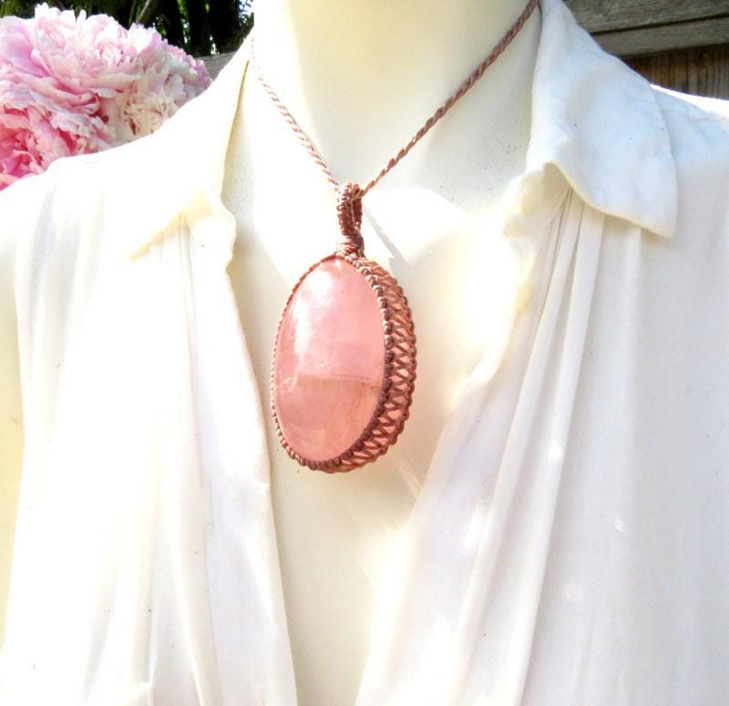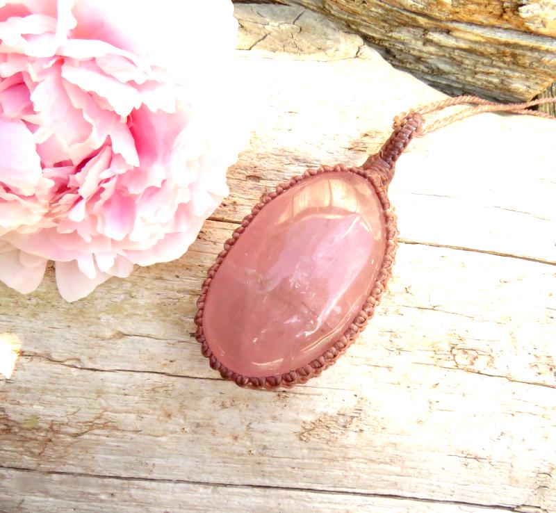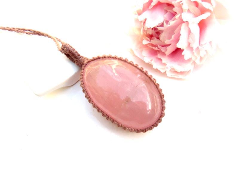 The PERFECT Rose Quartz macrame necklace - Beautiful, soft pink color - lovely, thick oval shape and a smooth polish. Gorgeous and a generous size 🌺 An important stone for helping us to raise our vibrations of love and compassion - for ourselves and others ~ : ) You will receive the exact stone in photos #1-7 and the video.
