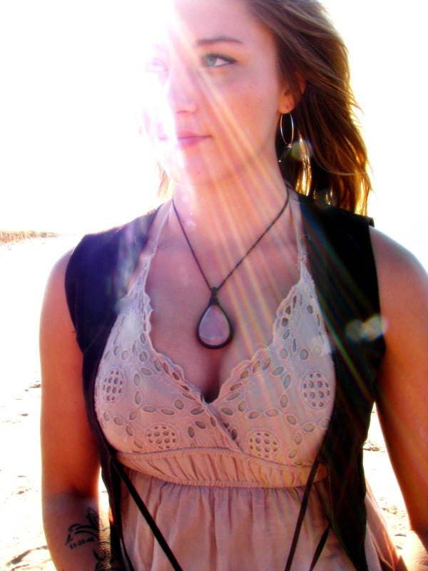 Materials: quartz, rose quartz, crystal, stone, cabochon, waxed cord.