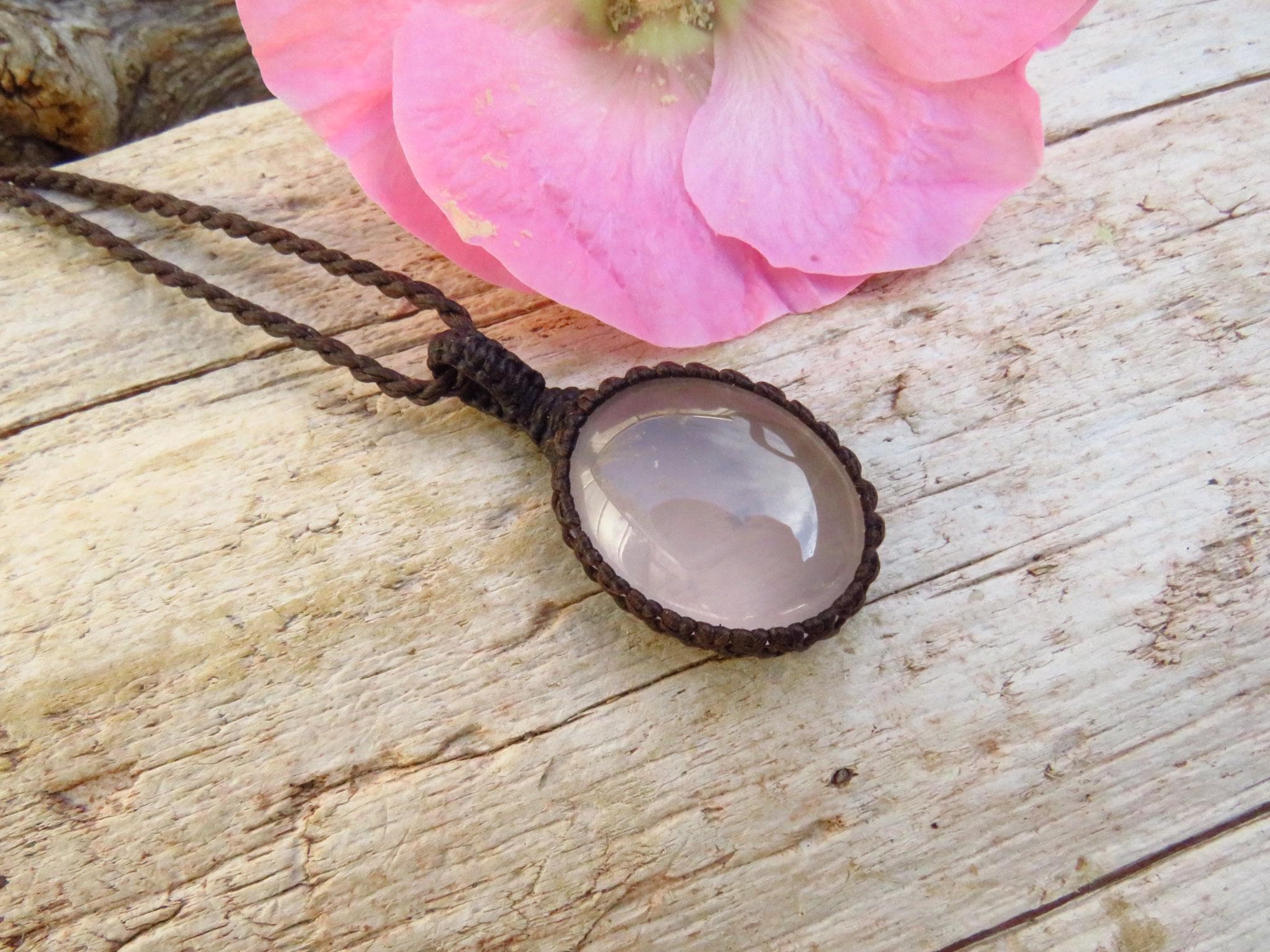 The PERFECT Rose Quartz macrame necklace - Beautiful, translucent soft pink color - lovely, oval shape and a smooth polish 🌺 An important stone for helping us to raise our vibrations of love and compassion - for ourselves and others .