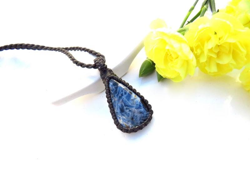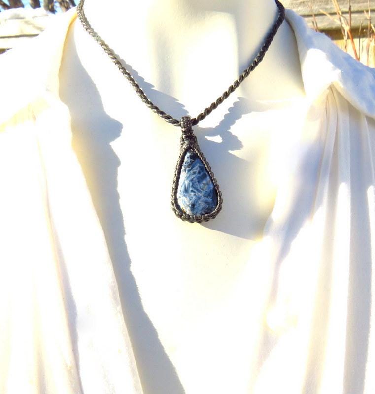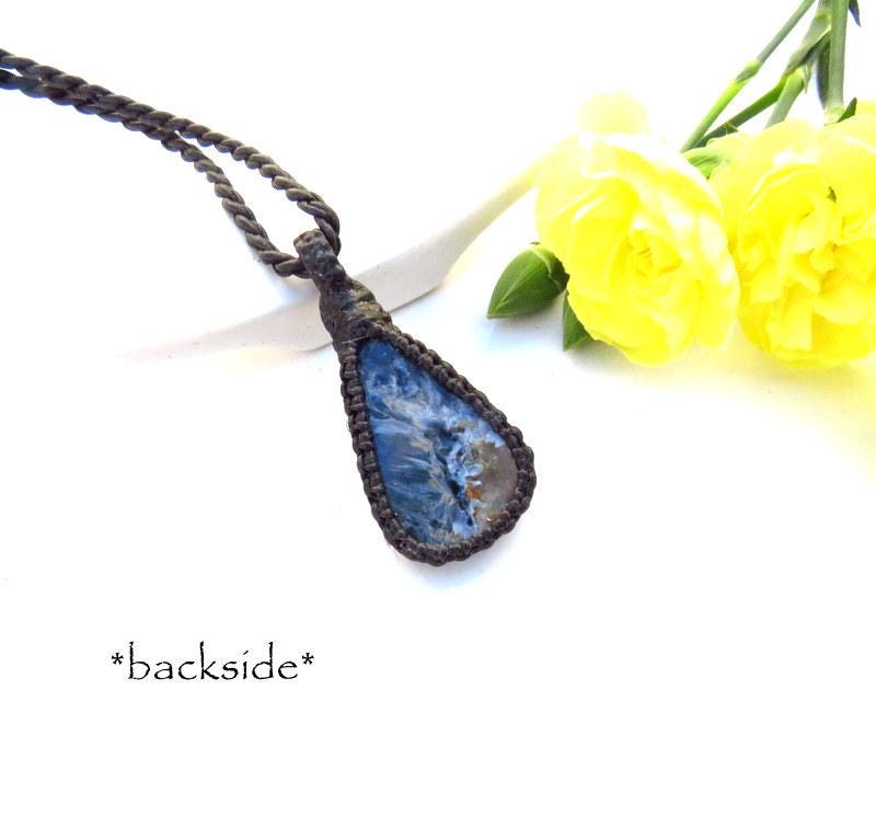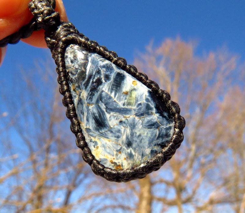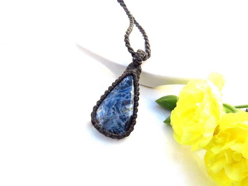 Gorgeous & RARE Pietersite macrame necklace - Rivers of midnight blue with a flashes of chatoyance - classic teardrop shape ✨💙