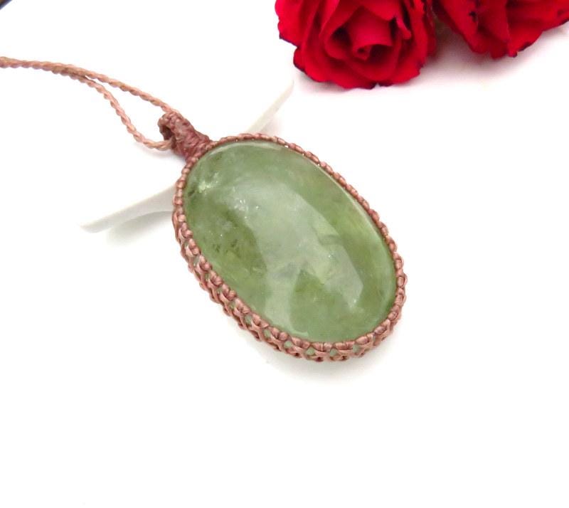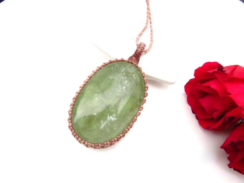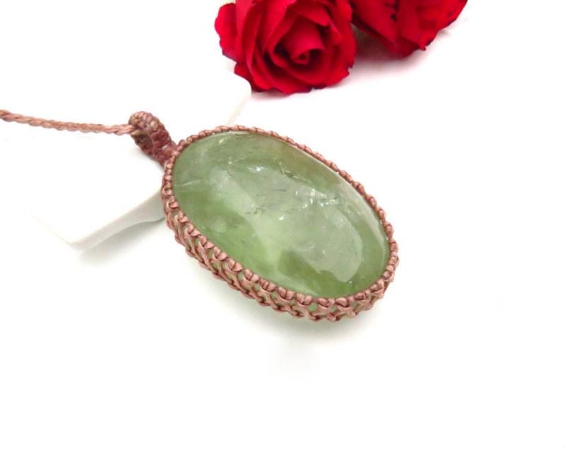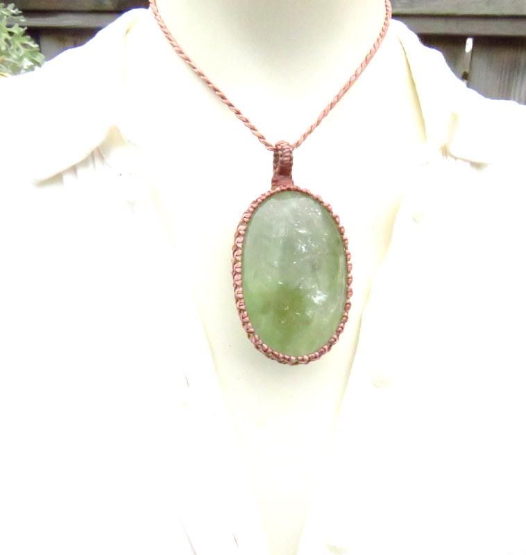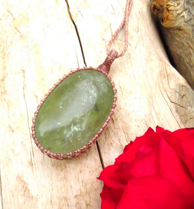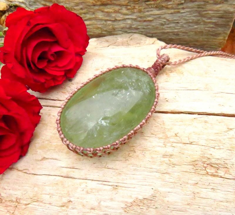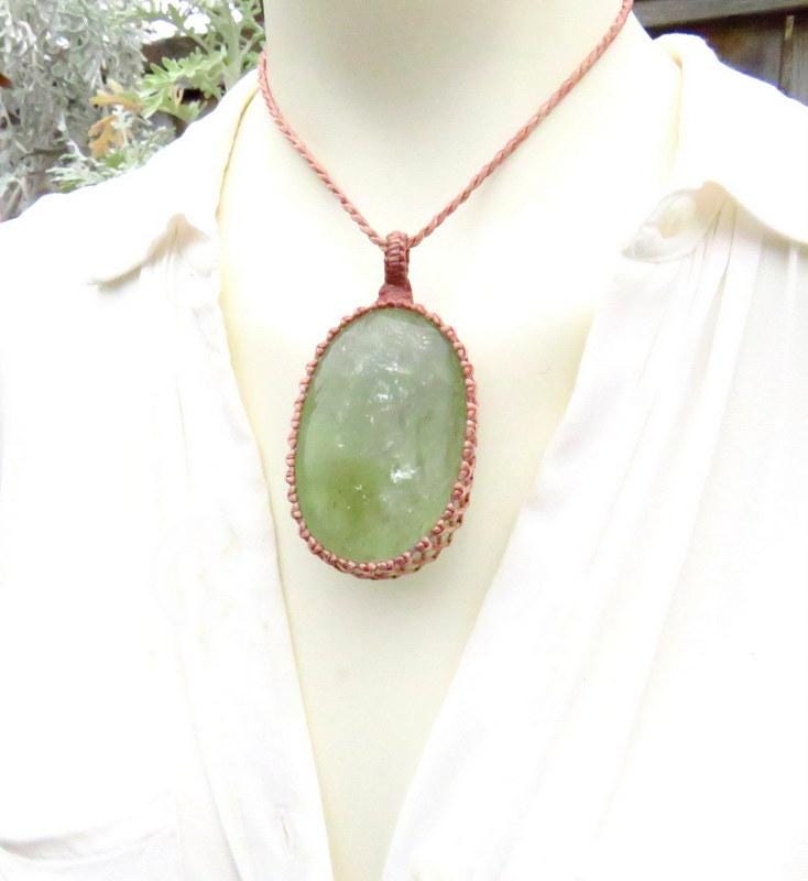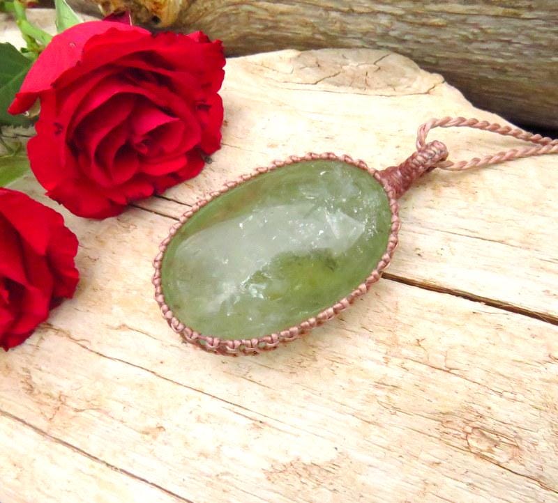 💚COMPASSION * PEACE OF MIND * CONNECTION 💚 Beautiful Prasolite crystal necklace - this beautiful Prasolite is from Brazil. Prasiolite is a variety of green Quartz that is mainly found in the Minas Gerais region of Brazil. The color is a gorgeous, soft green with a magical world inside - including peek a boo rainbow prismmms ! Although this gem can be formed naturally, it is commonly replicated by heating or irradiating regular Amethyst (Quartz). Natural Prasiolite displays a soft, sage green hue, whereas treated Prasiolite showcases a deeper, vibrant green colour.