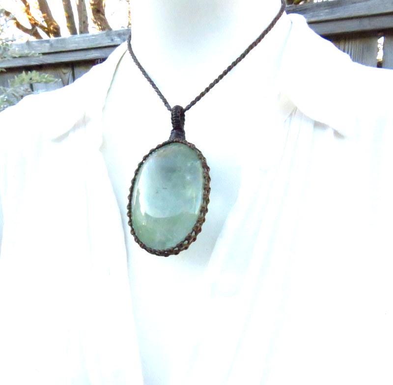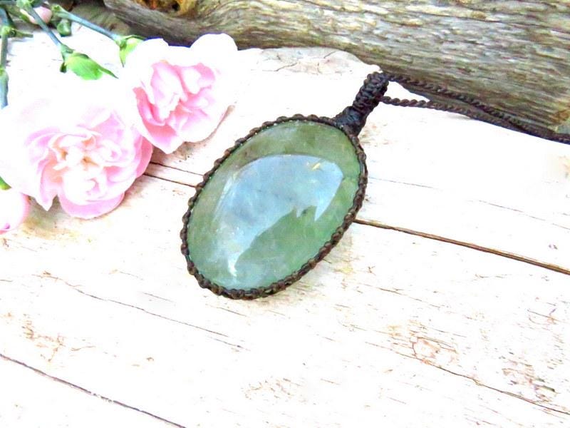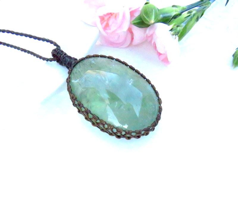 💚COMPASSION * PEACE OF MIND * CONNECTION 💚 Beautiful Prasolite crystal necklace - this beautiful Prasolite is from Brazil. Prasiolite is a variety of green Quartz that is mainly found in the Minas Gerais region of Brazil. The color is a gorgeous, soft green with a magical world inside ! Although this gem can be formed naturally, it is commonly replicated by heating or irradiating regular Amethyst (Quartz). Natural Prasiolite displays a soft, sage green hue, whereas treated Prasiolite showcases a deeper, vibrant green colour.